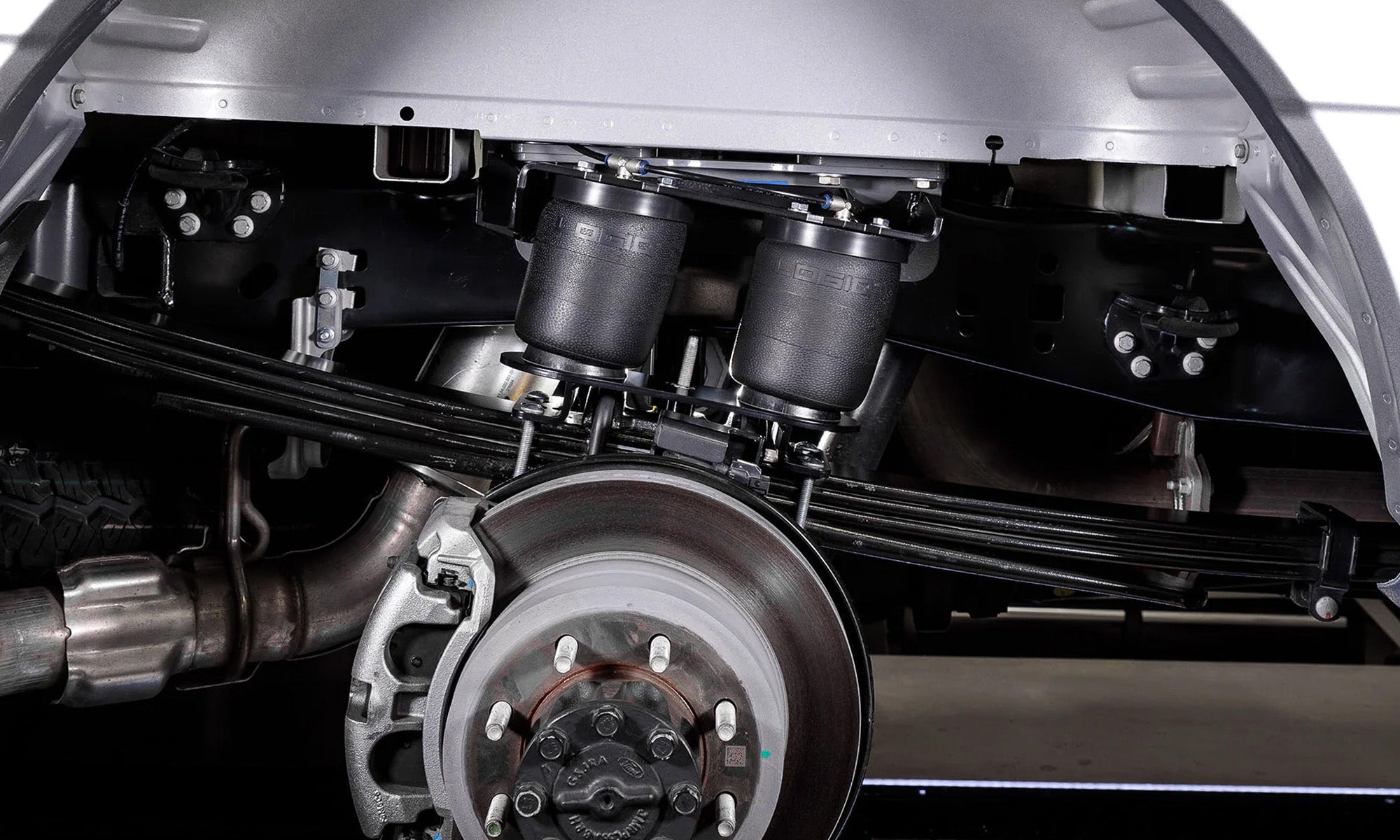 LOGIQ air springs are designed for more travel than traditional double bellow helper bags, maximizing suspension droop and your trucks ability on and off the road.