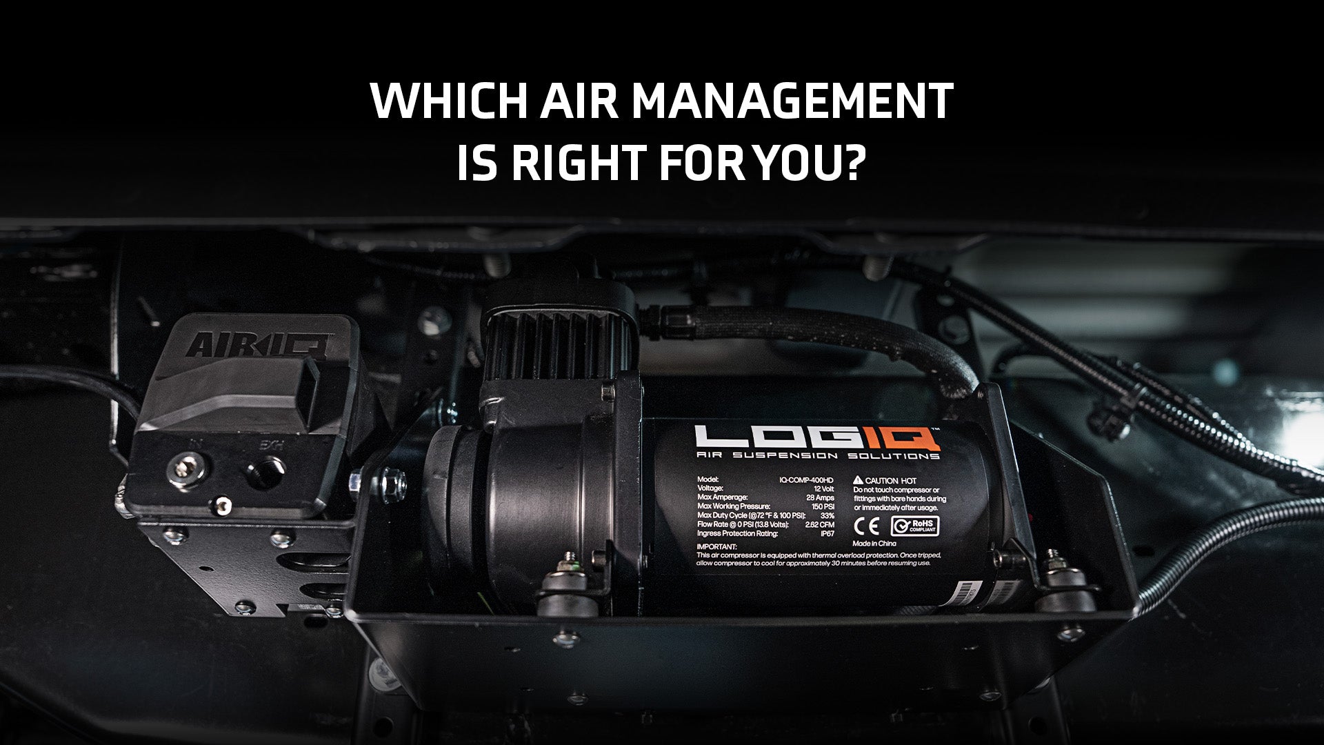 Complete your kit with an Air Management Package (AMP) that best suits your needs. LOGIQ Air Management is the brains of the operation that will intelligently manage the air delivery to your Air Spring Kit. Each Air Management Package can be controlled with the free AirIQ App or paired with the optional Remote Control.